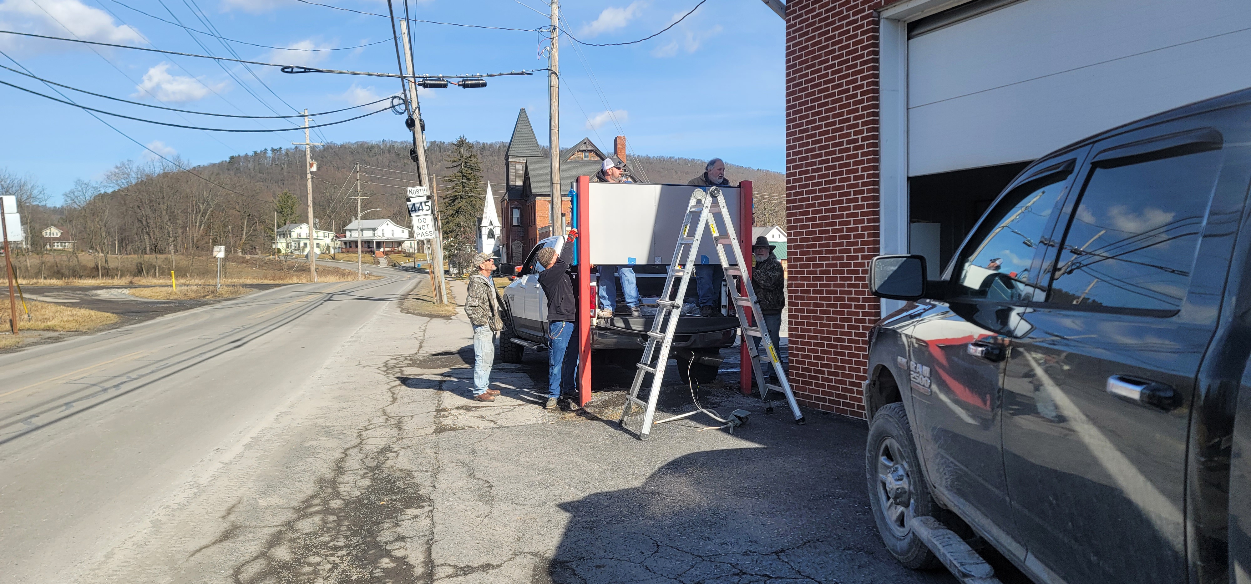 Volunteers today removed the old static letter sign and replaced it with a new LED sign that promises to catch the eye of the traveling public. Keep your eye on the sign for notifications of upcoming activity